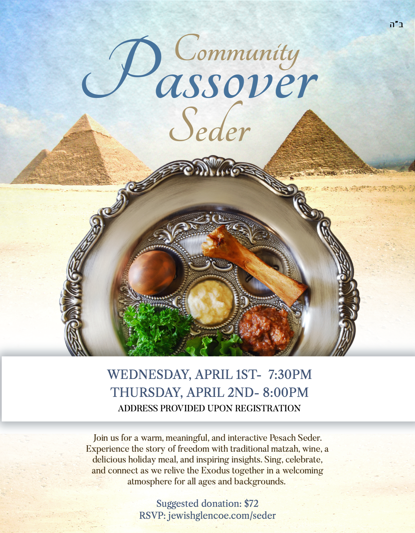 Join us for an engaging and meaningful Passover Seder, where tradition comes to life. Enjoy handmade Shmurah Matzah, a delicious holiday meal, and an inspiring retelling of the Exodus, all in a welcoming atmosphere. No experience necessary—every Jew is family!